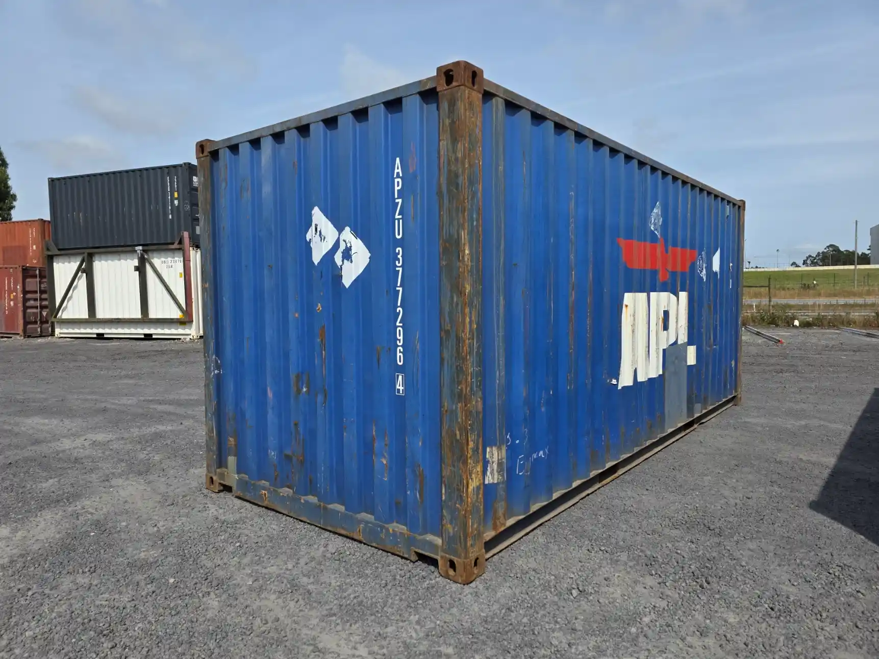 Contenitore APL usato blu da 20 piedi, Classe B / WWT. Impermeabile al vento e all’acqua, ideale per stoccaggio, progetti di trasformazione e soluzioni logistiche a terra.